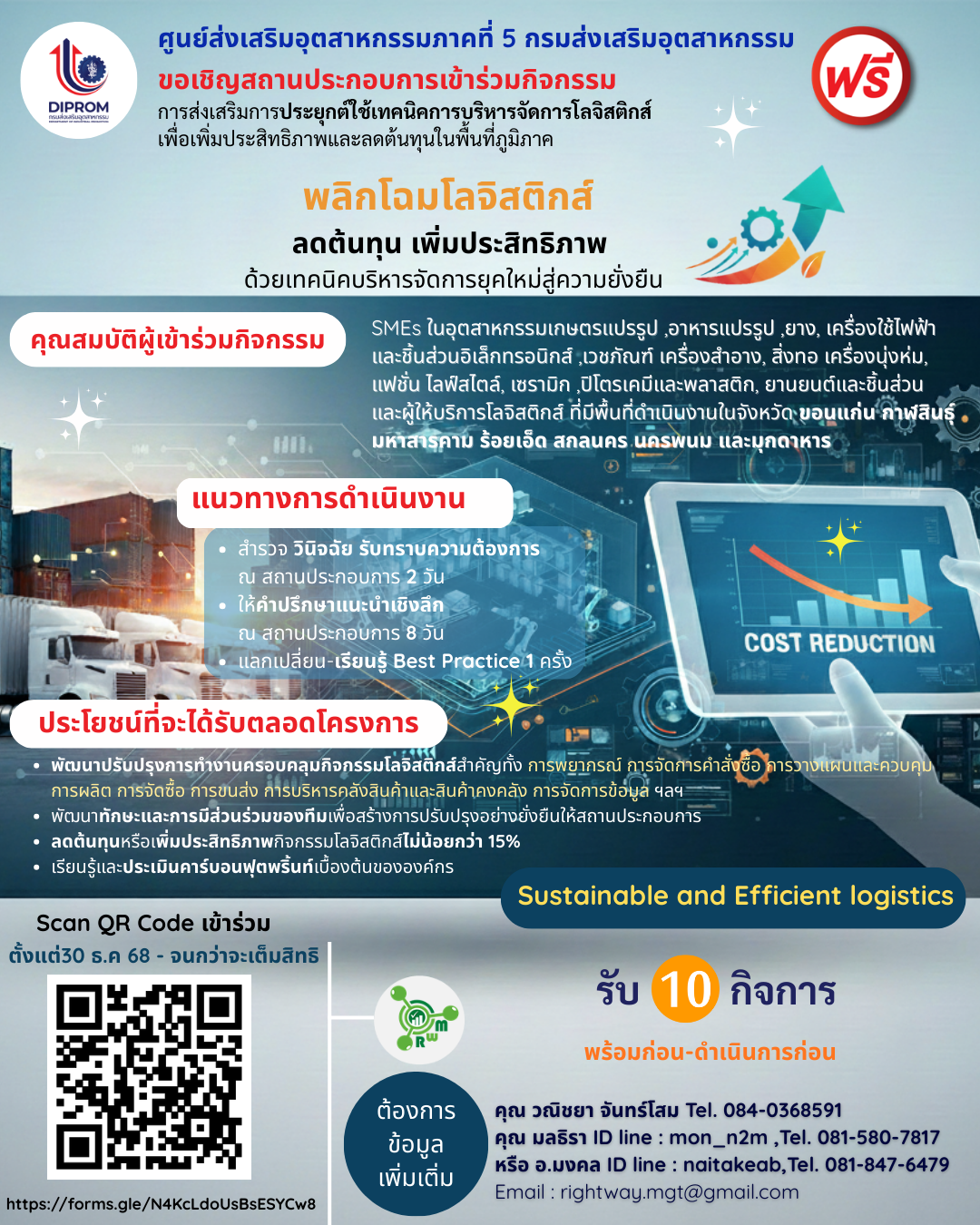 "พลิกโฉมโลจิสติกส์" ลดต้นทุน เพิ่มกำไรให้ธุรกิจคุณ เข้าร่วมฟรี! รับ 10 กิจการ พร้อมก่อน-ดำเนินการก่อน
